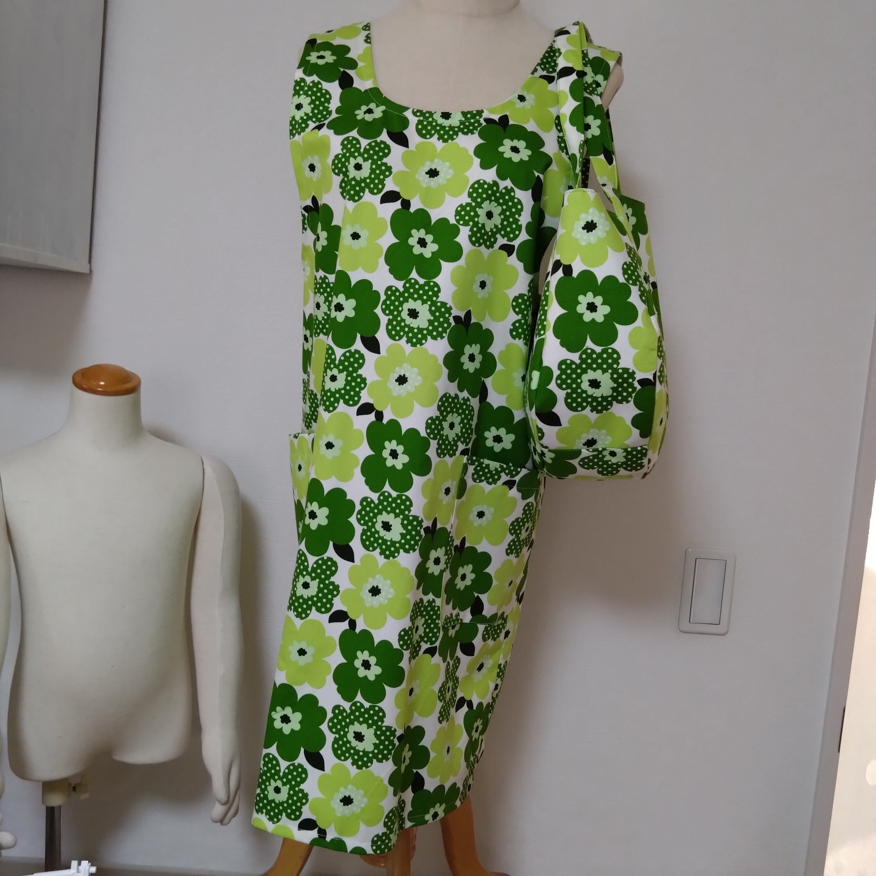 おしゃれなデザインで、エプロンとバッグがセットになっています。