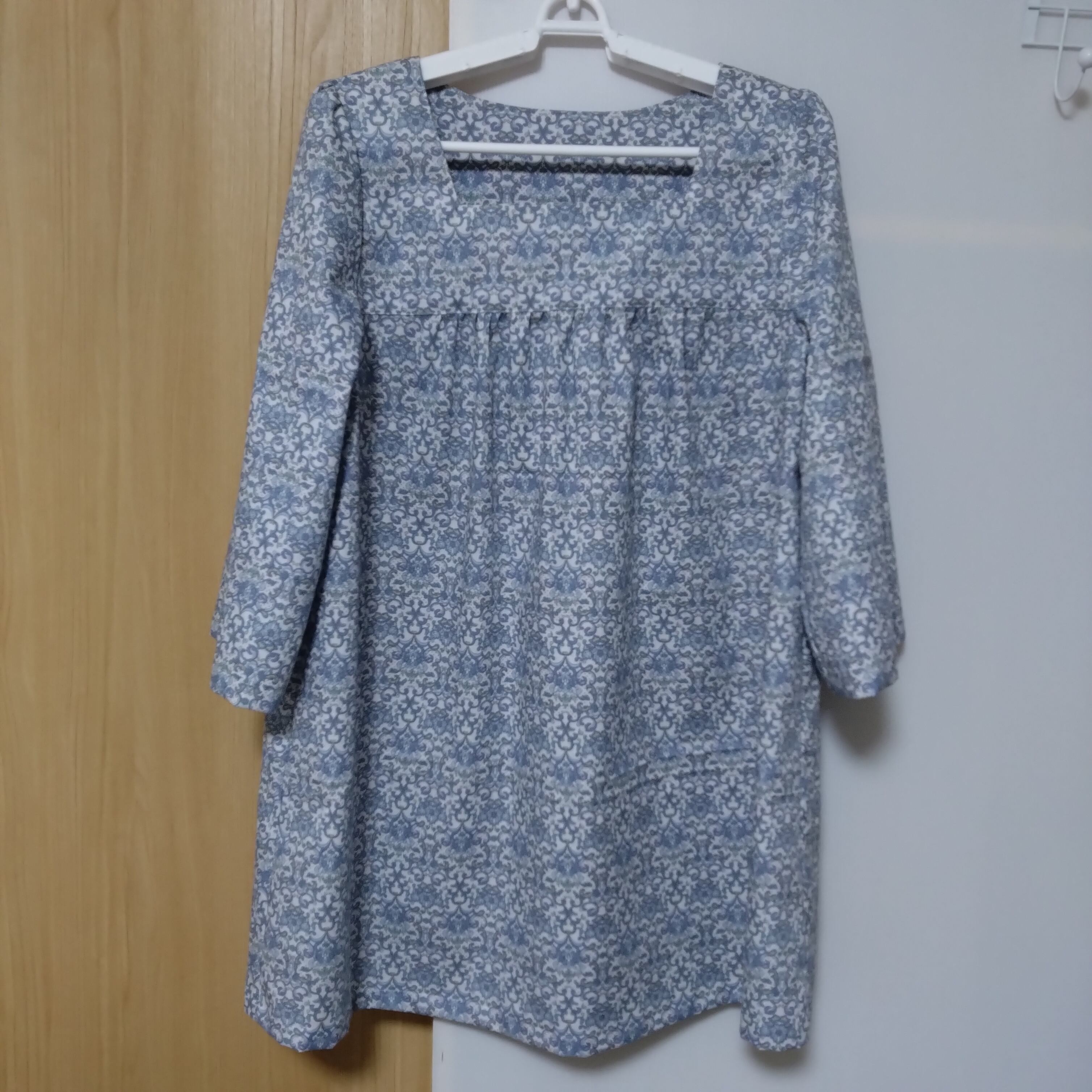 胸元、背中は、ヨークの切り替えでギャザーが寄せて作りました。