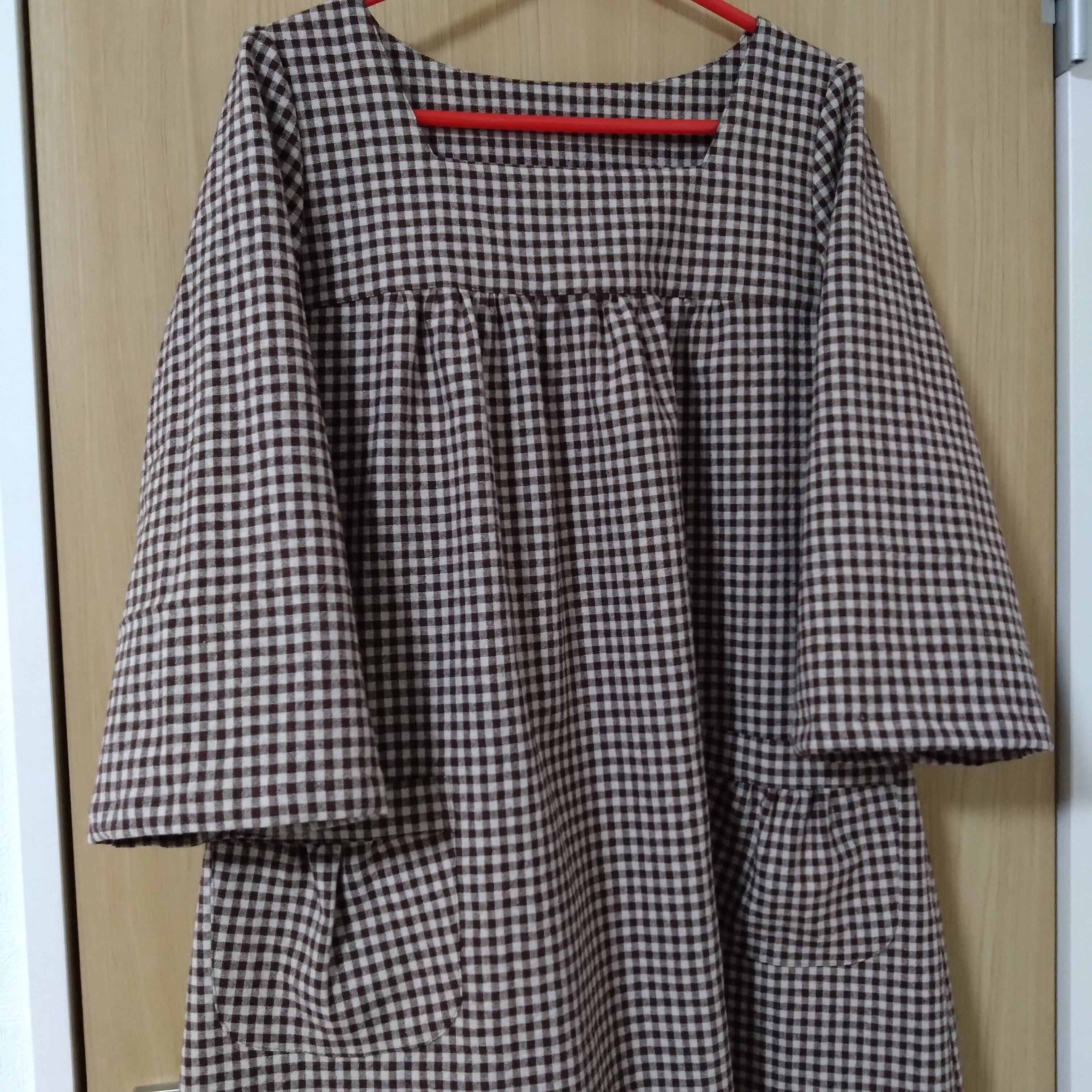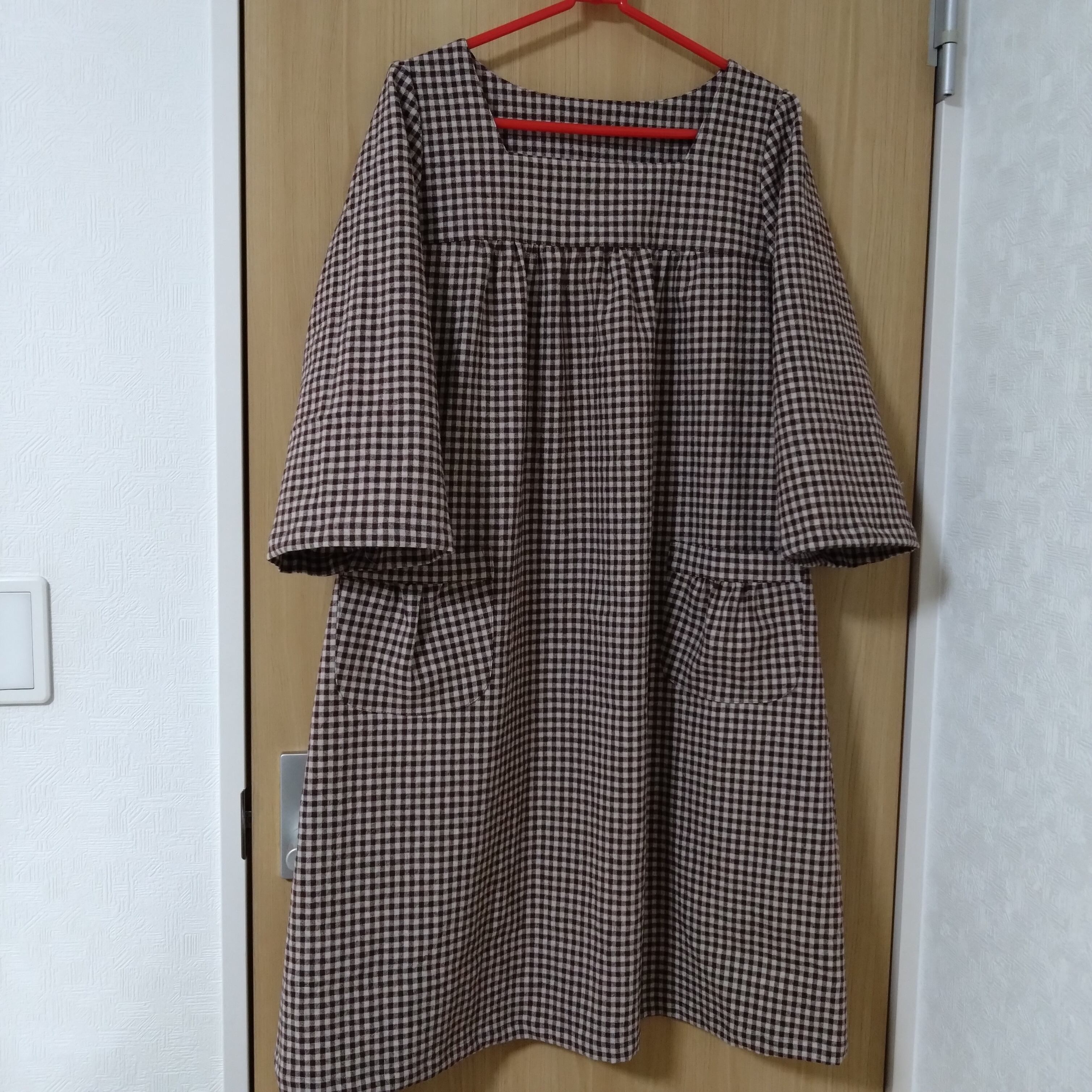 こちらの作品は、ハンドメイドのスクエアネックワンピースです。