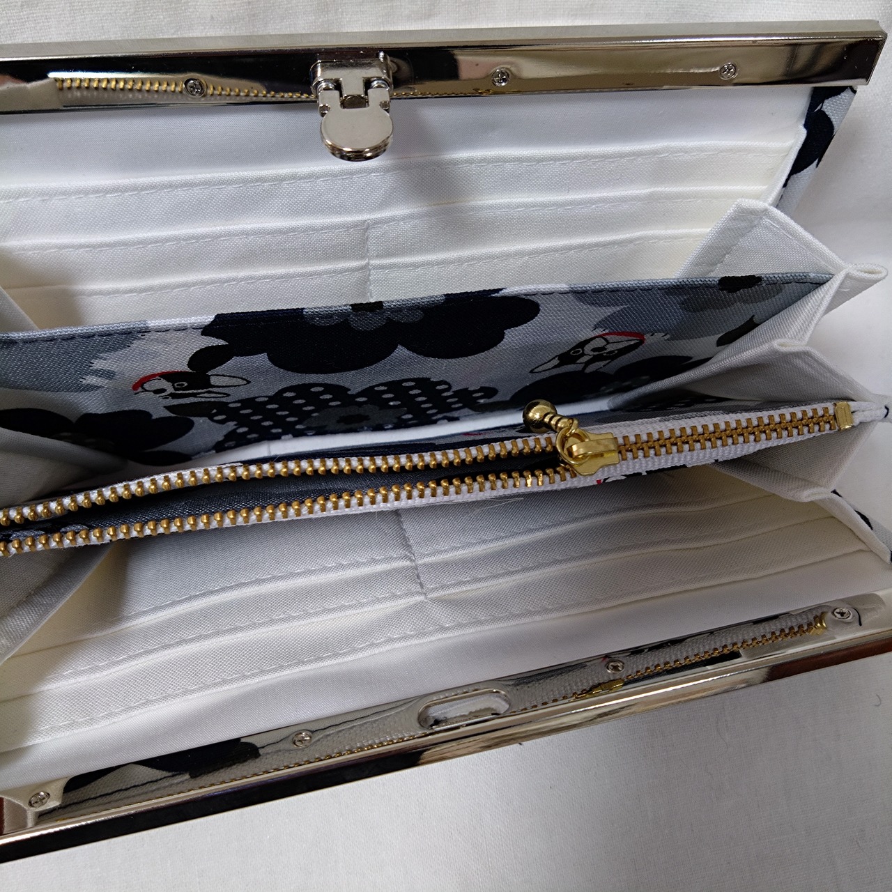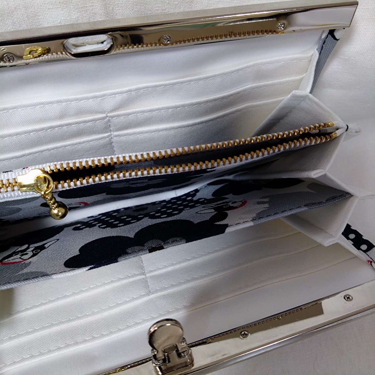内布 白の無地、ファスナーと仕切りは、表と同じ柄を使用して作りました