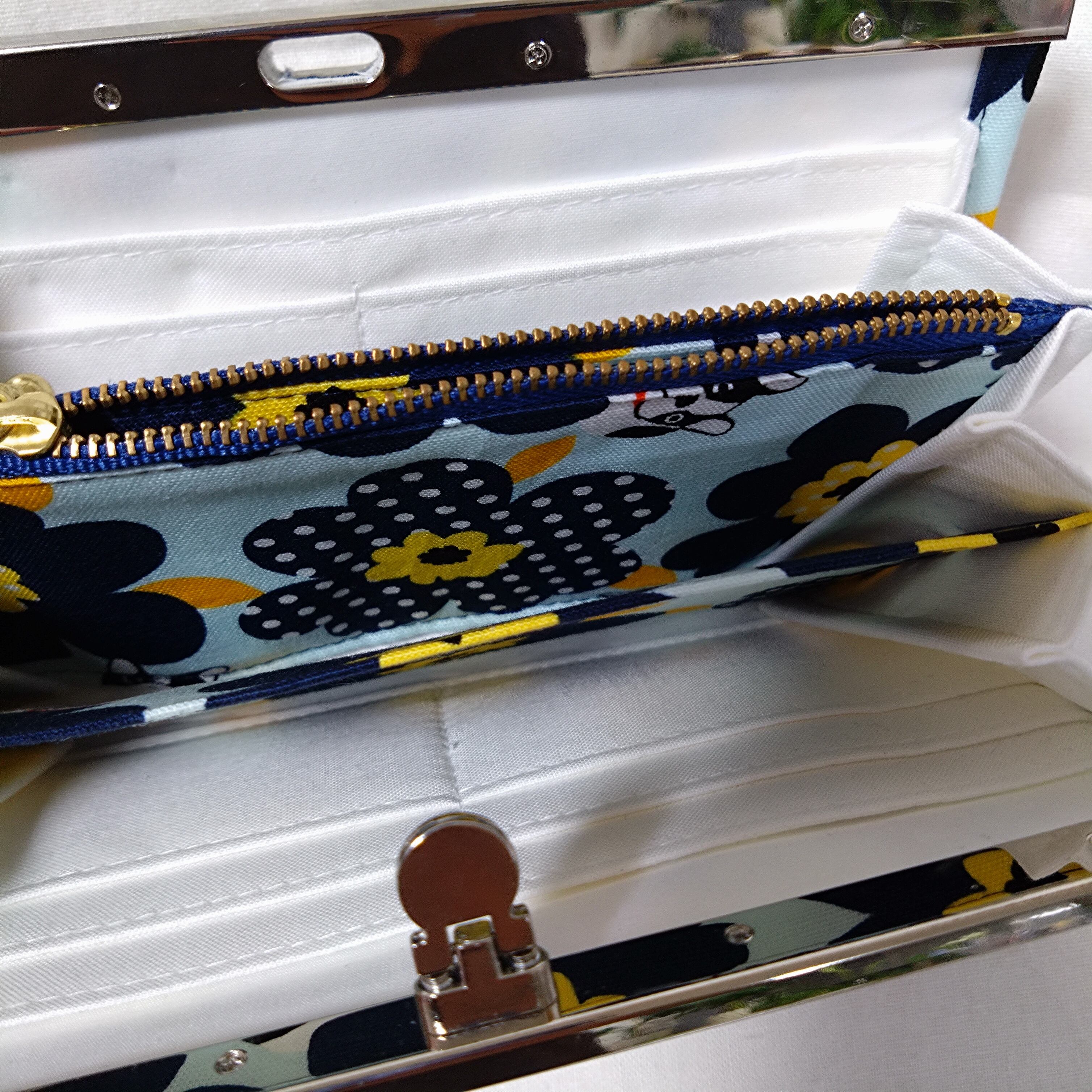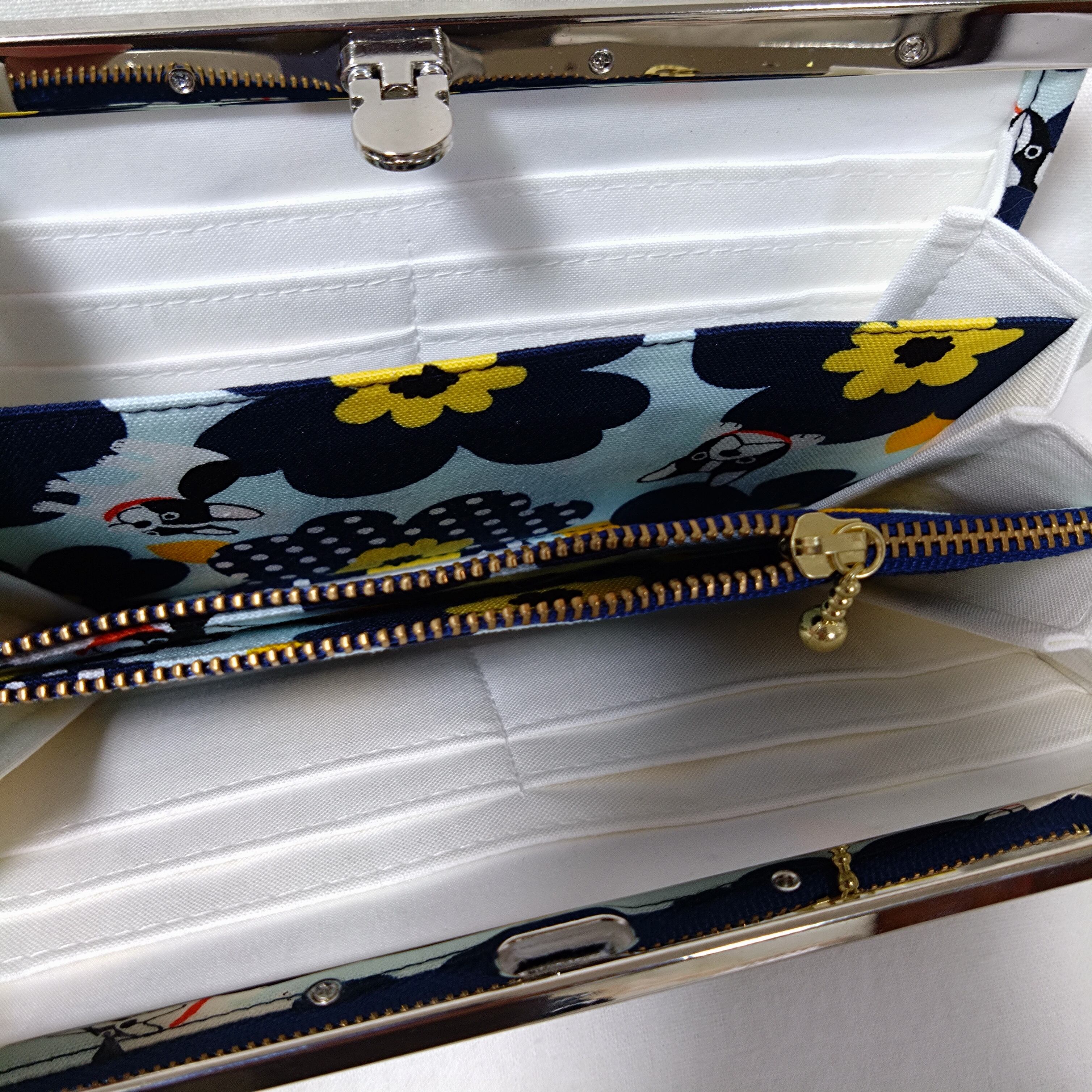 内布 白の無地、ファスナーと仕切りは、表と同じ柄を使用して作りました