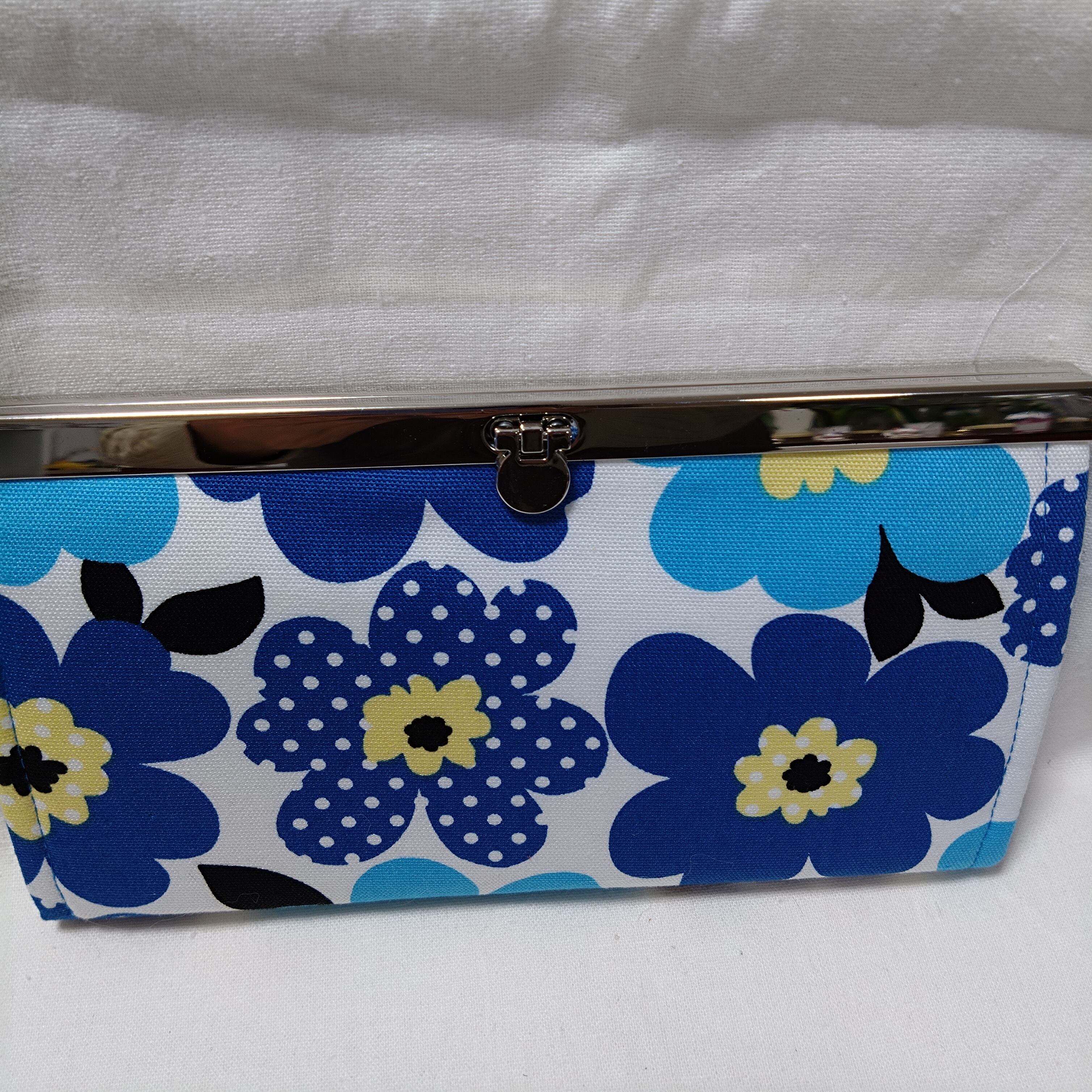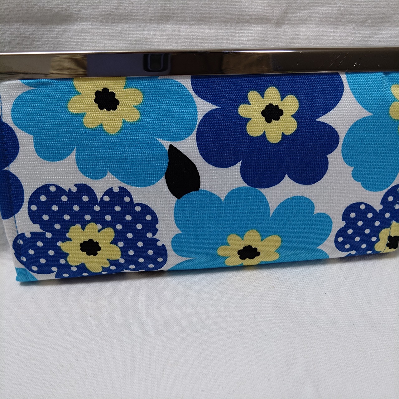 内布 青の無地、ファスナー口と仕切りは、表と同じ柄を使用してます